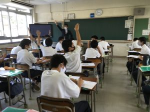 > 温品中学校で出前授業