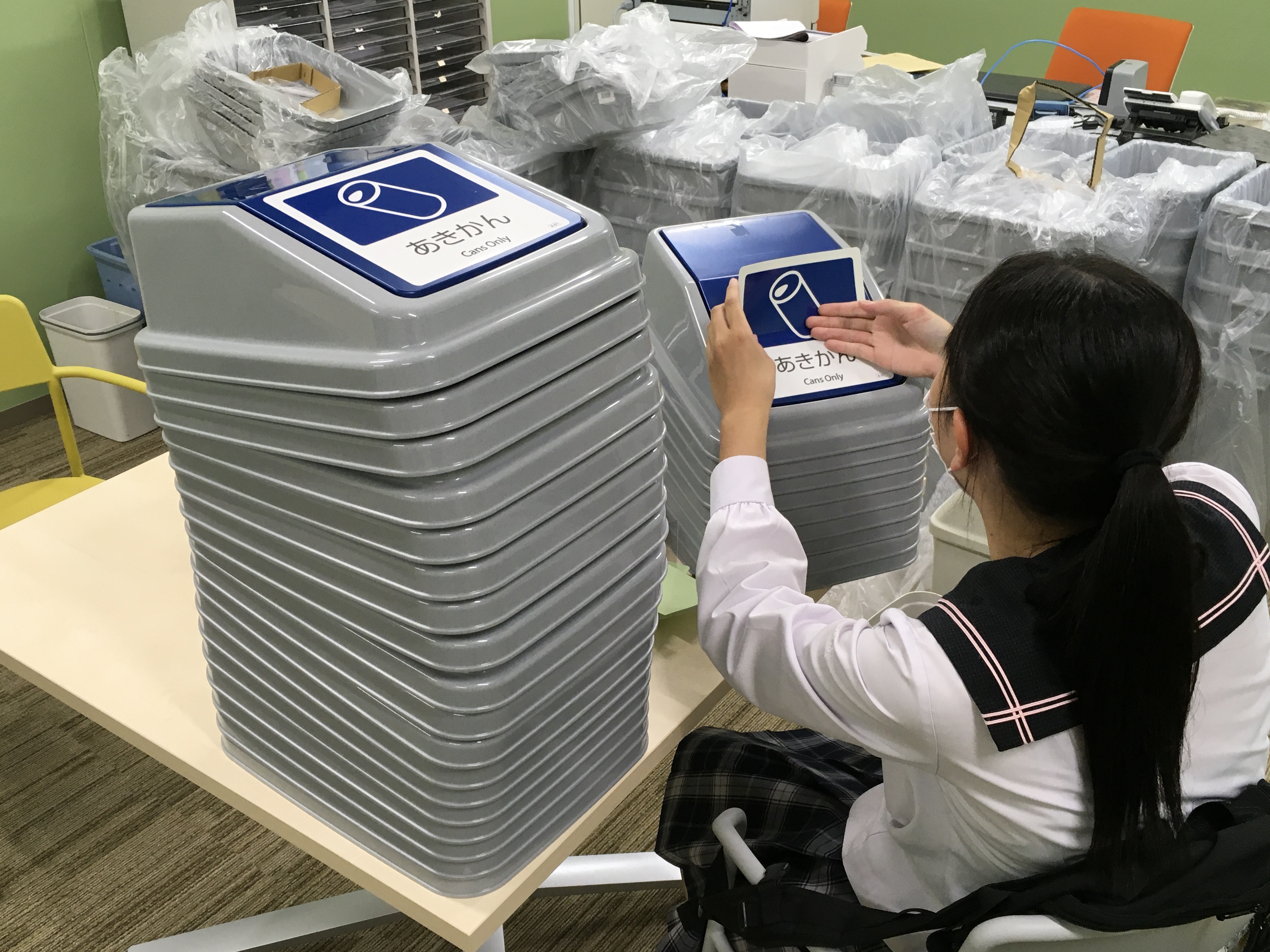 > 新しいゴミ箱が各教室に設置されます