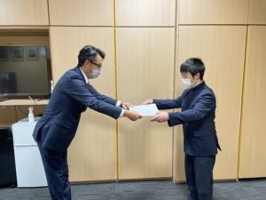 > 2年生の西川 優輝 君が除幕式に参加