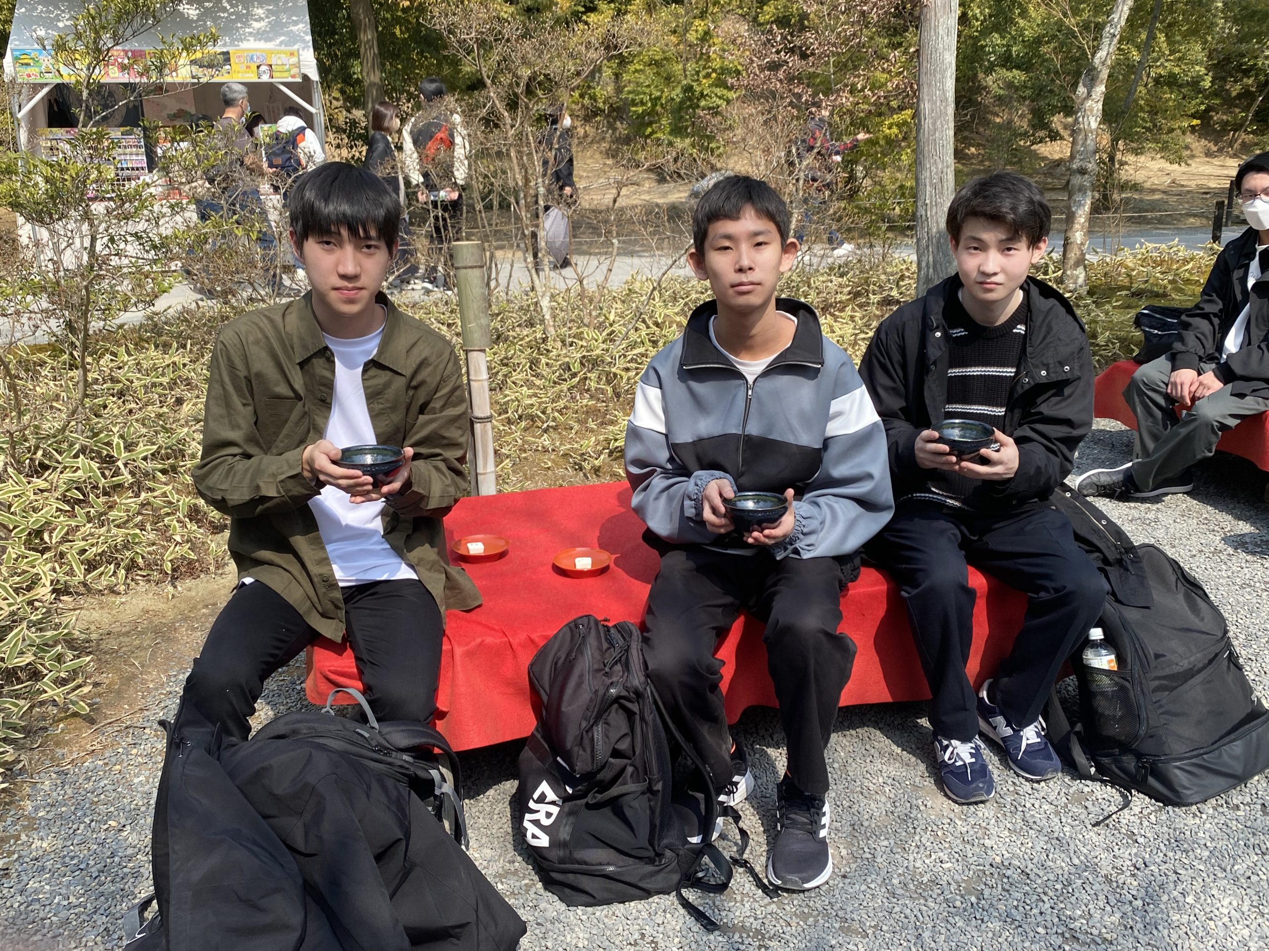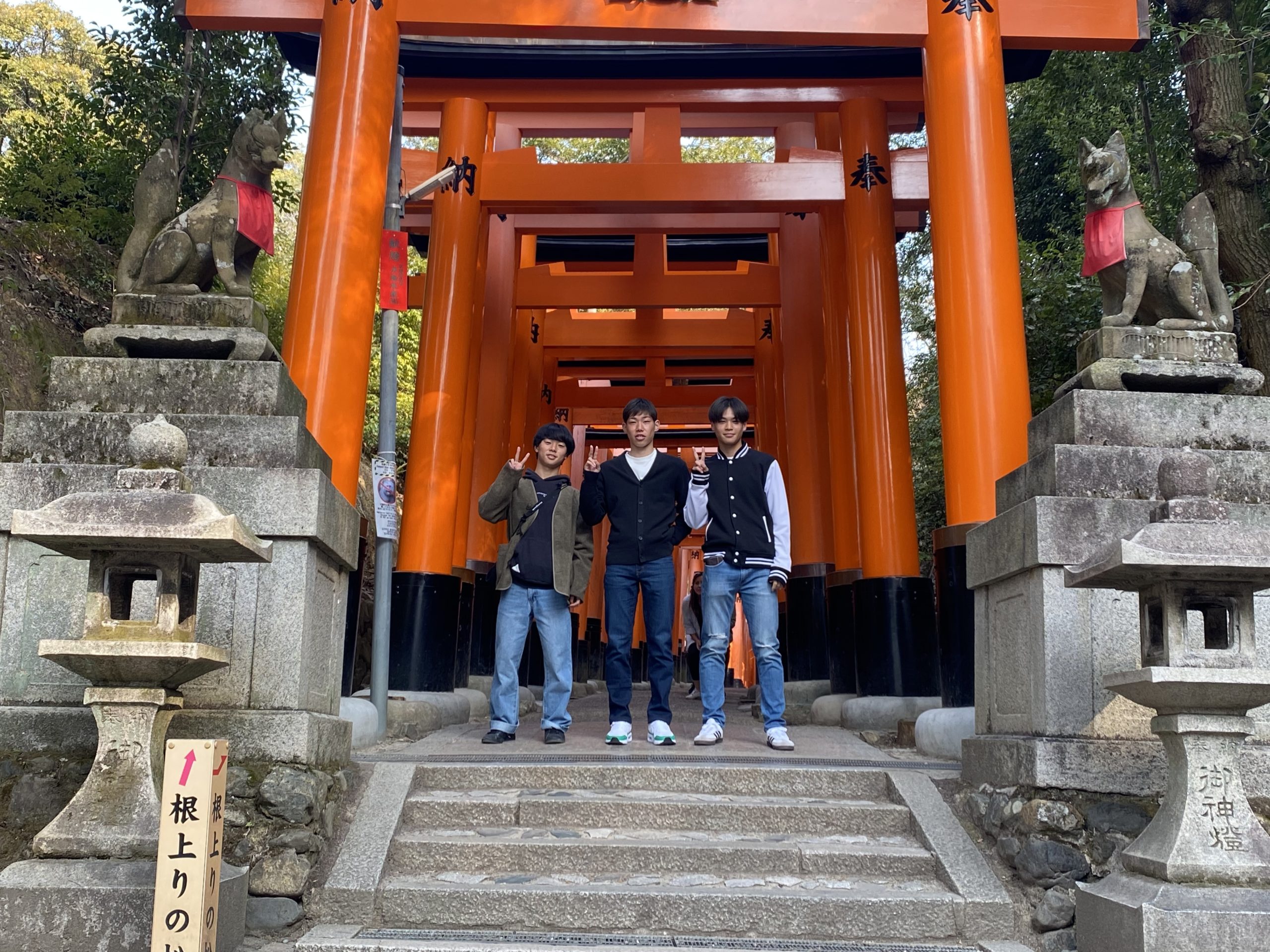 午前は伏見稲荷大社の参拝で、千本鳥居の迫力に驚かされました。短い時間でしたが、なんと山頂まで行って戻ってきた班もありました!