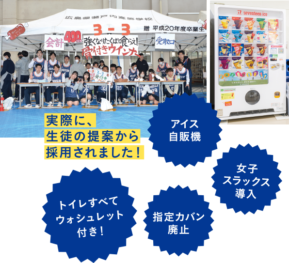 生徒総会も生徒主体で組織され、提案内容を生徒会が校長先生と直接協議! 近年だと生徒の声で「休憩時間中は携帯