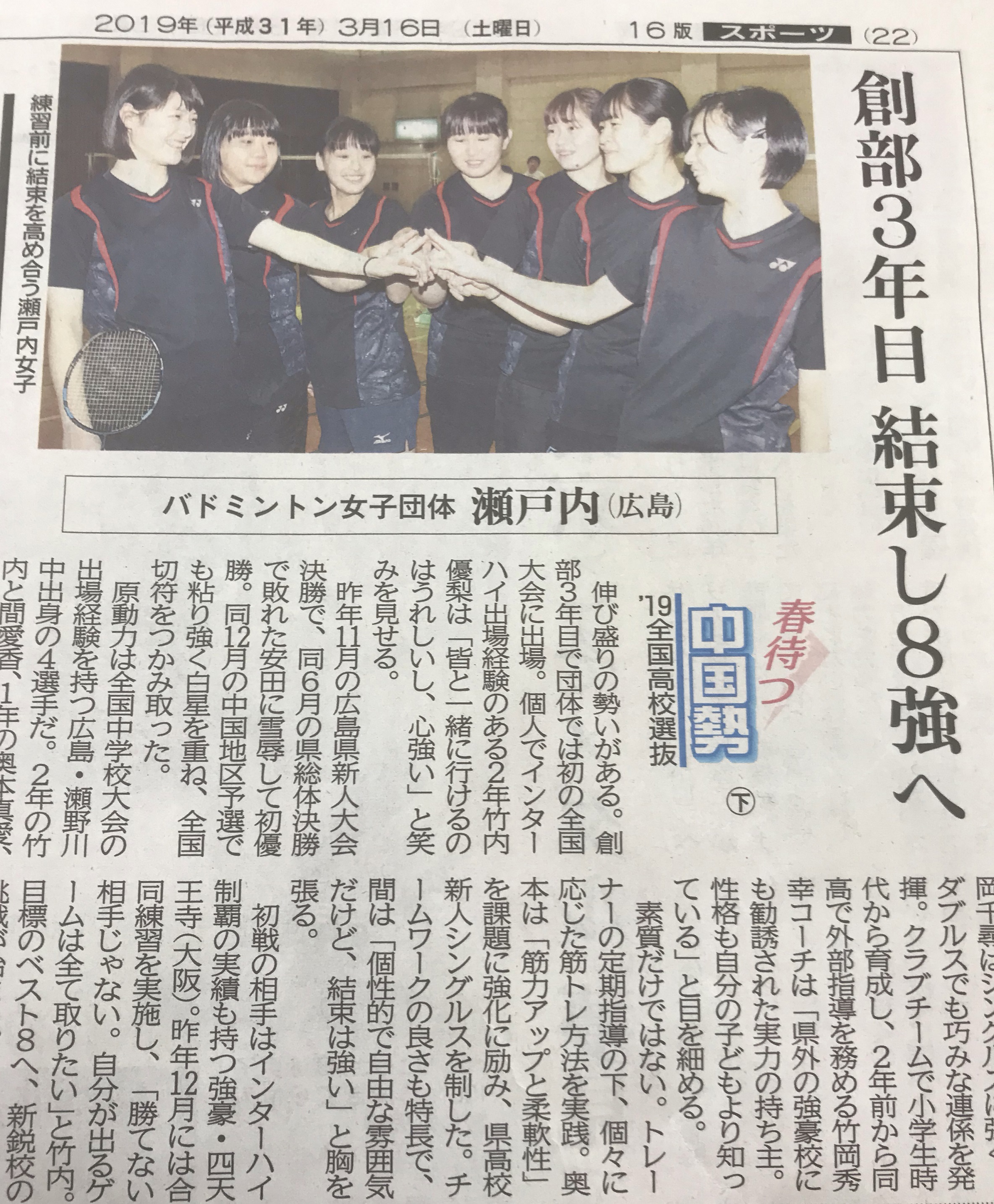 > バドミントン部 中国新聞